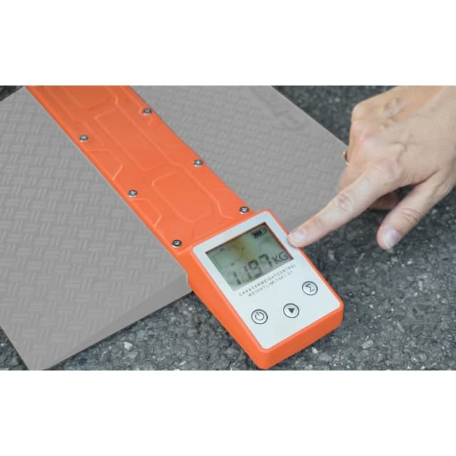 Kannettava digitaalinen Berger-akselipainovaaka (max 1500 kg). Mittaa helposti renkaiden, akselien ja koko ajoneuvon painon ylikuorman välttämiseksi.