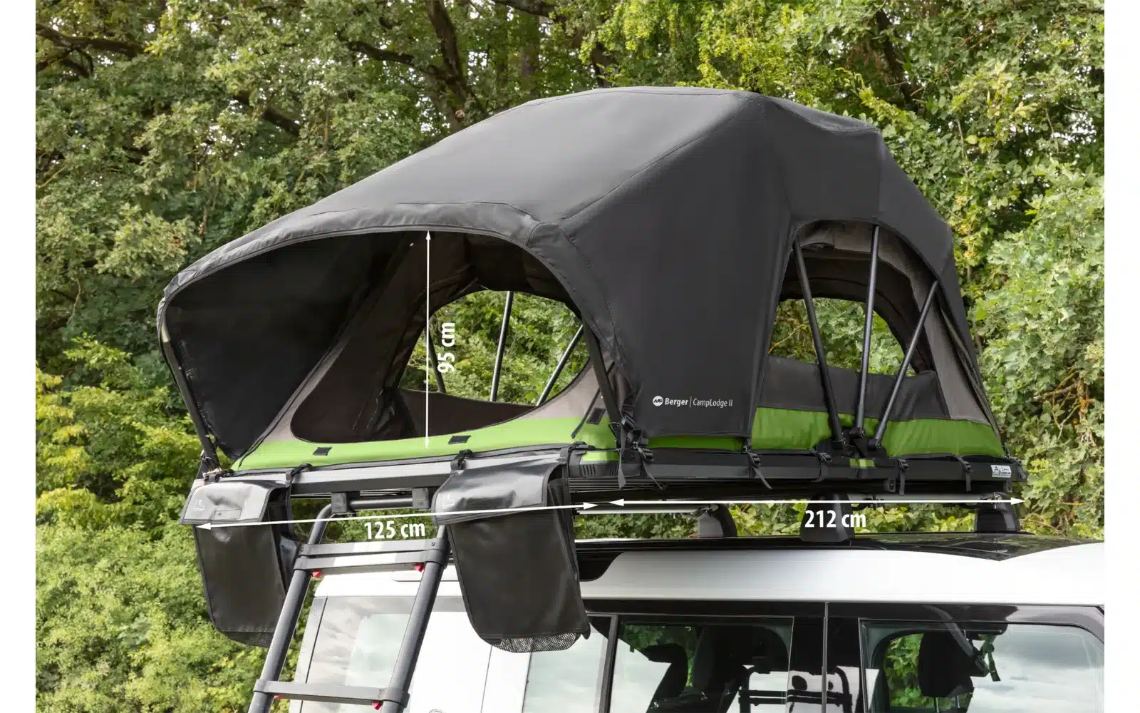 Berger CampLodge on kahden hengen taittuva kattoteltta, jossa yhdistyvät mukavuus, kestävyys ja käytännöllisyys. Vahva alumiinirunko, integroitu LED-valaistus ja 300 kg kantavuus tekevät siitä täydellisen matkakumppanin kaikkiin seikkailuihin.