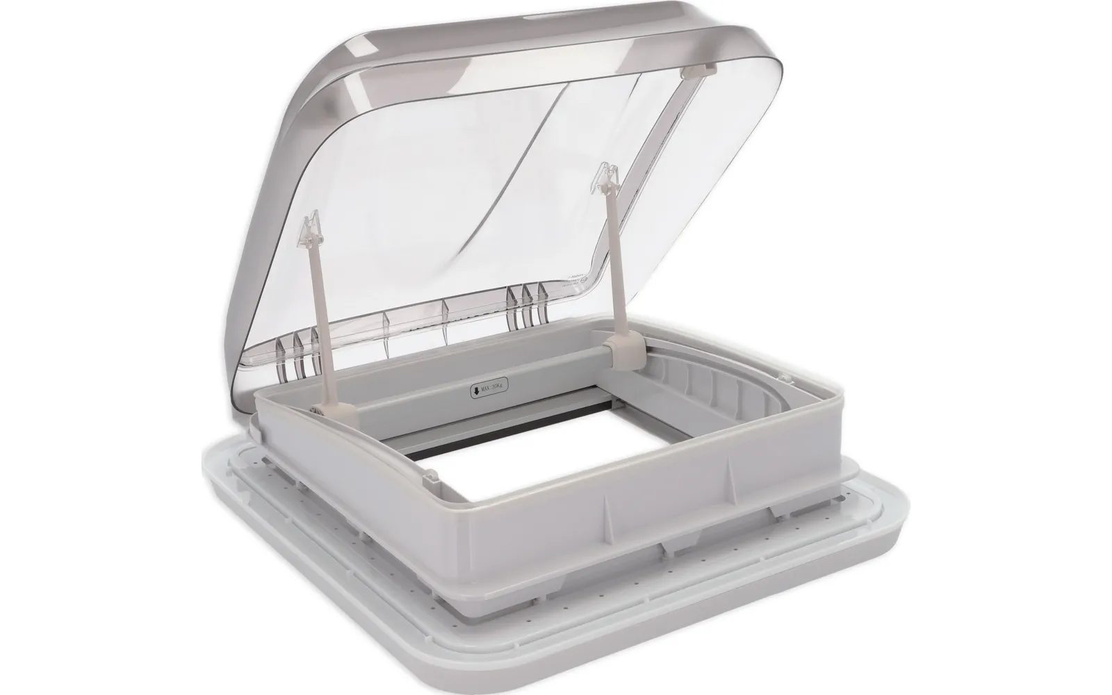 Kestävä ja luotettava: UV-stabiloitu materiaali takaa, että luukku kestää vuodesta toiseen auringonpaistetta, sadetta ja hurjimpia sääolosuhteita menettämättä läpinäkyvyyttään tai toimivuuttaan. Sen lukitusmekanismi takaa turvallisuuden jopa 130 km/h ajonopeudessa.