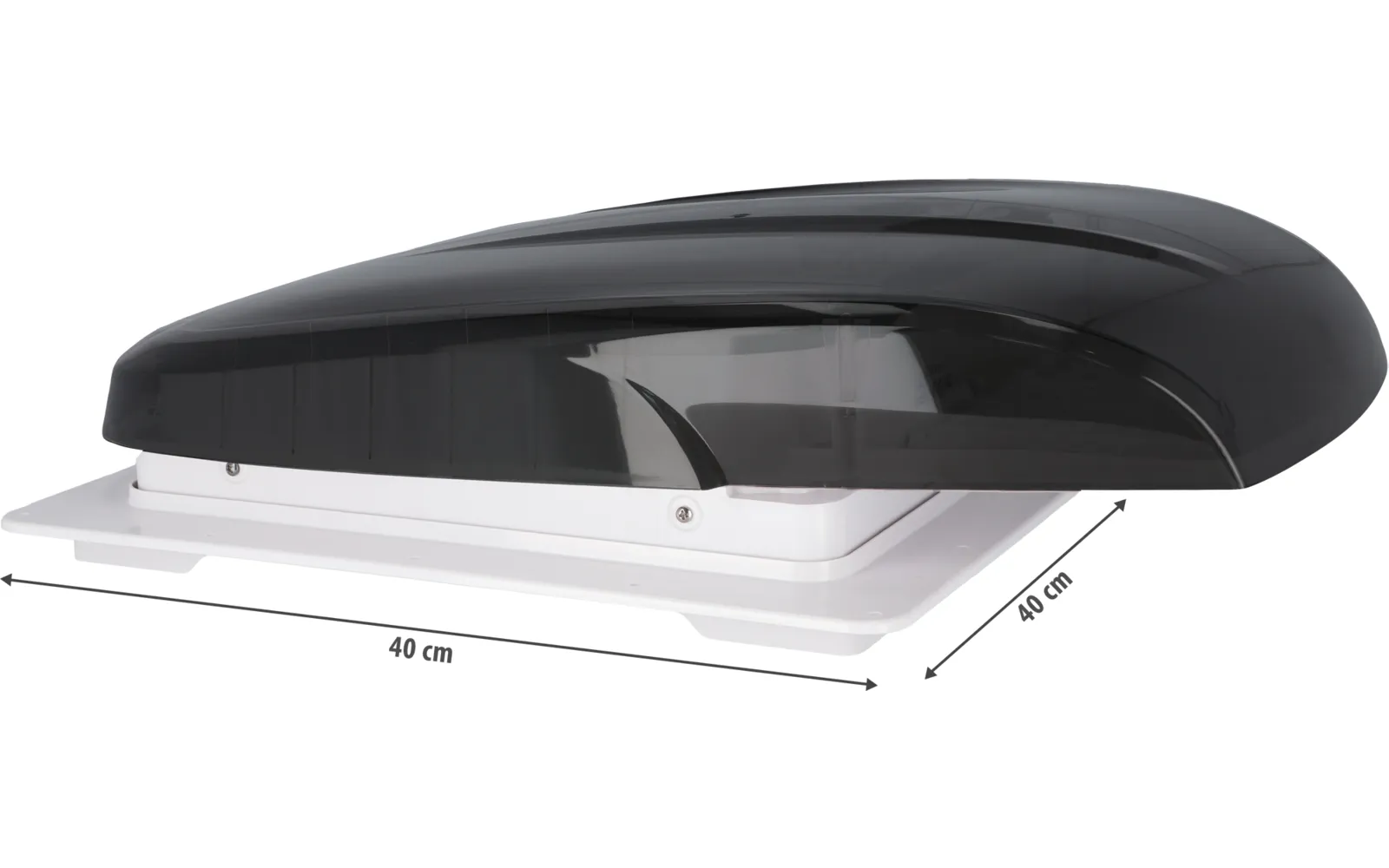 Tämä 12 V kattotuuletin sopii useimpiin standardikokoisiin asennusaukkoihin (355 x 355 mm tai 40 x 40 cm) ja tarjoaa markkinoiden parhaita ominaisuuksia kilpailukykyiseen hintaan. Kestävä, UV-suojattu ja iskunkestävä rakenne on sallittu käytettäväksi aina 130 km/h ajonopeuteen asti.