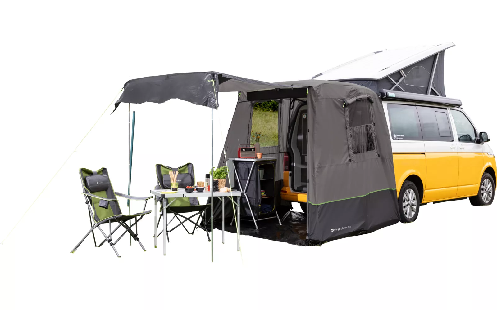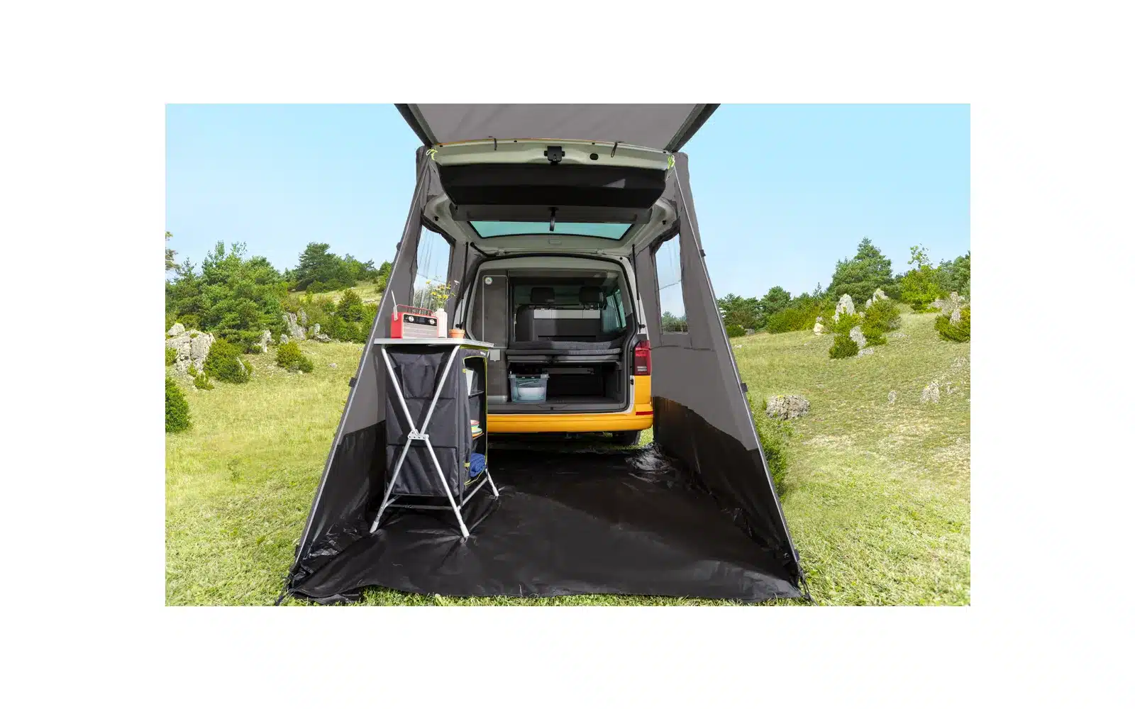 Berger Tonale Rear -takateltta sopii VW T5 ja T6 -malleihin ja tuo lisää asumistilaa auton taakse. Kevyt ja kehyksetön rakenne tekee asennuksesta helppoa ja nopeaa. Suuri etuovi voidaan avata aurinkokatokseksi ja sivuseinien ikkunat takaavat valoisan ja ilmavan sisätilan.