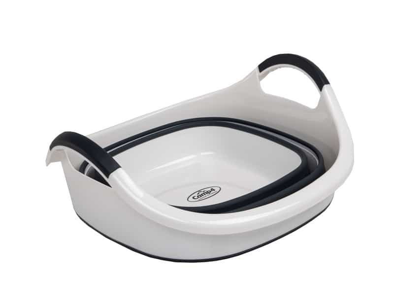 Vanlife-kodin tilaihme! Camp4 kasaan taittuva 22 litran vati/kori toimii pyykkikorina tai tiskialtaana, mutta menee litteäksi (6 cm) säilytystä varten.