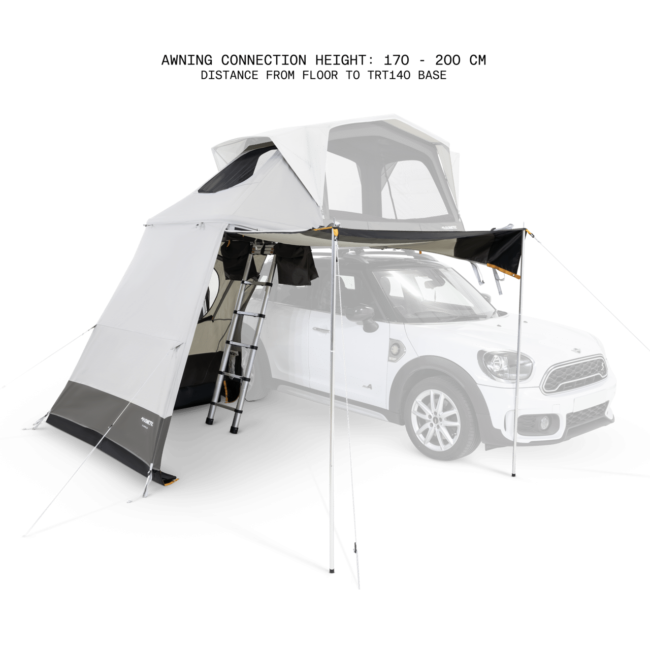 Yhteensopiva Dometic TRT 140 AIR -kattoteltan kanssa. Kevyt ja kompakti etuteltta toimii sekä aurinkokatoksena että suljettuna yksityistilana. Toimitus suoraan tehtaalta – rahtivapaasti teltan yhteydessä.