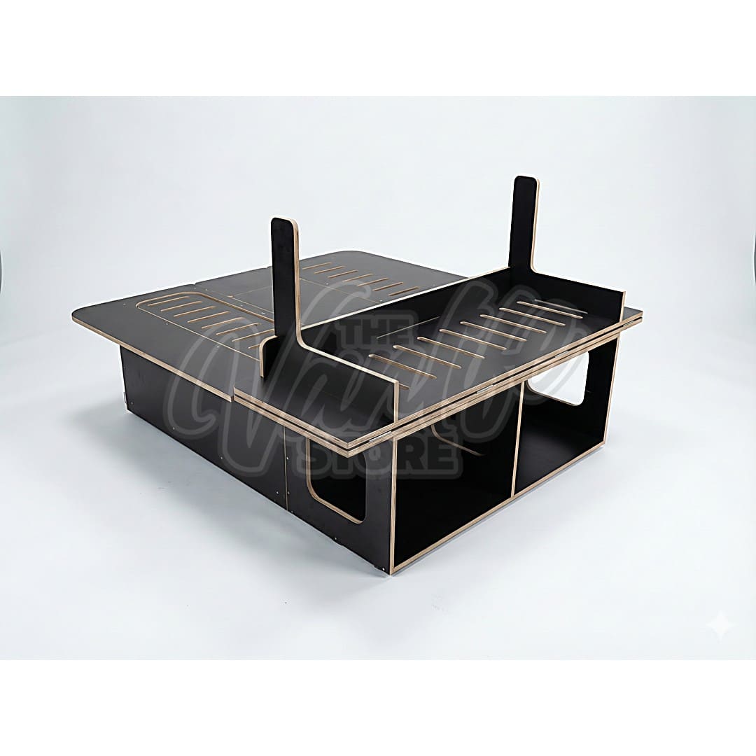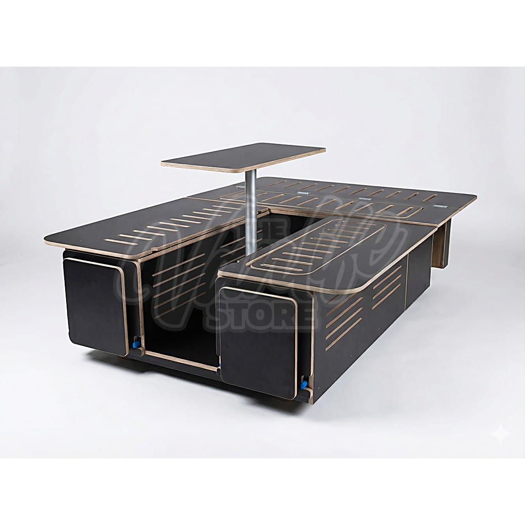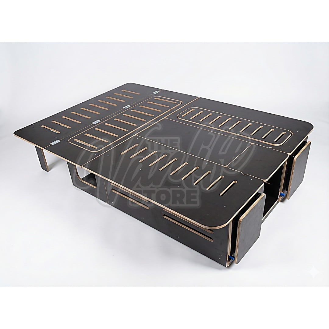 Pakettiauton retkismoduuli #1 on modulaarinen, CNC-koneistettu sänky- ja säilytysratkaisu pakettiautoihin. Moduuli muuntuu sängyksi tai pöytäryhmäksi ja sisältää pitkät vetolaatikot retki- ja keittiövarusteille. Toimitetaan rakennussarjana, helppo viimeistellä omaan käyttöön.