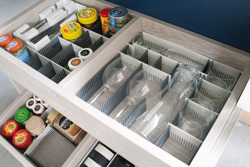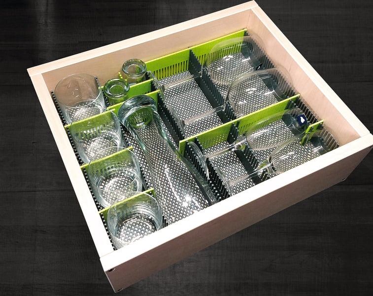 Lopeta tavaroiden kolina! Purvario laatikoston jakajalistat (8 kpl) luovat täydelliset lokerot laseille ja purkeille. Leikkaa sopivaksi ja napsauta kiinni.
