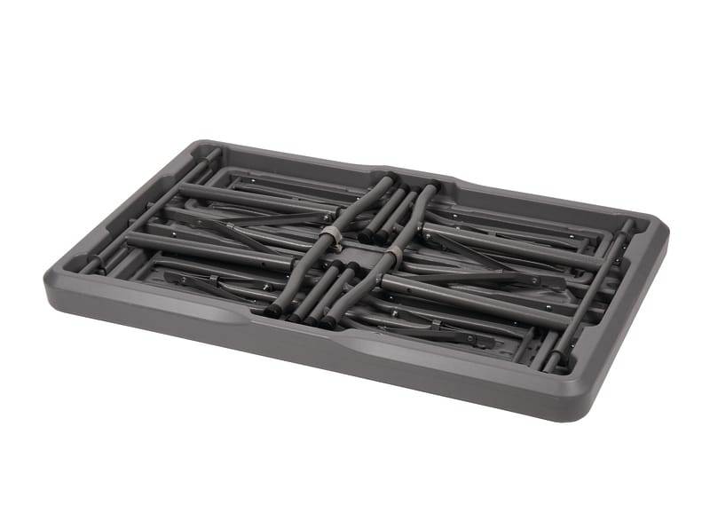 Tämä setti on suunniteltu nimenomaan vanlife-elämää ja retkeilyä silmällä pitäen, missä tila on aina kortilla. Pöytäryhmä on erittäin nopea pystyttää: avaat vain salkun, taitat jalat auki ja nostat penkit esiin. Ei monimutkaisia kokoamisohjeita tai irto-osia, jotka voisivat kadota. Tukeva teräsputkirunko takaa vakauden epätasaisemmallakin alustalla, ja helppohoitoinen pinta kestää roiskeet ja pyyhkimisen.
