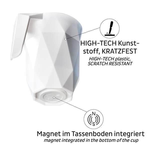 Kahvit mukaan turvallisesti! Silwy magneettinen ”To Go” muki (0,25 l) pysyy pystyssä ja sisältää kannen. Särkymätön ja kevyt.