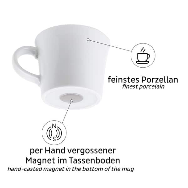 Nauti espresso aidosta kupista! Silwy magneettiset posliini-espressokupit (2 kpl, 70 ml) pysyvät pystyssä magneetin avulla. Sisältää alustat.