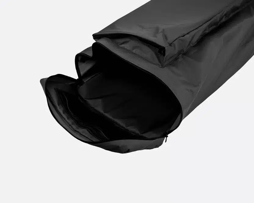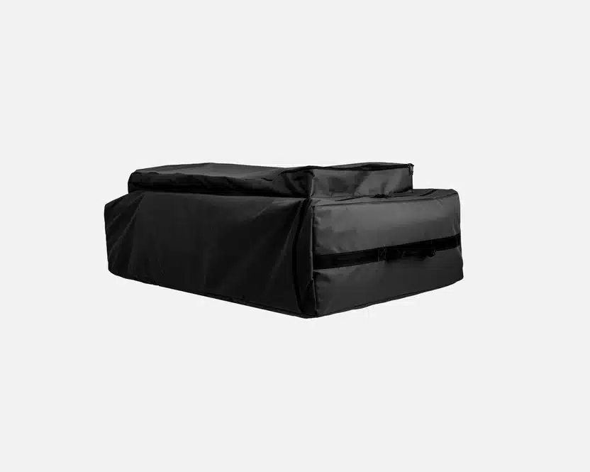 TentBox GO:ta ei tarvitse purkaa säilytystä varten – poista se autostasi ja säilytä se kokonaan koottuna. Jos kuitenkin haluat säästää tilaa, kuten asunnossa, voit purkaa sen ja varastoida osat erikseen. Tämä säilytyspussi pitää kaiken järjestyksessä ja pölyttömänä, ja siinä on etutasku kankaalle, pieni tasku laitteistoille ja suuri osa rungon pylväille.