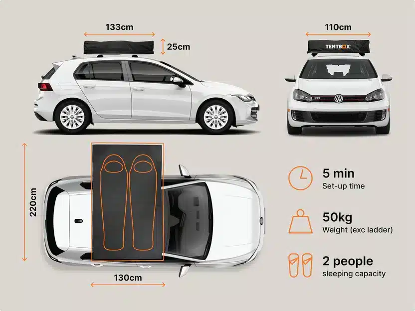 TentBox Lite 2.0 on suunniteltu kestämään, mukautumaan eri vuodenaikoihin ja tarjoamaan mukavan yöpymiskokemuksen missä tahansa pysähdytkin. Kevyt rakenne ja kompakti pakkauskoko tekevät siitä ihanteellisen vaihtoehdon myös pienempien autojen omistajille.