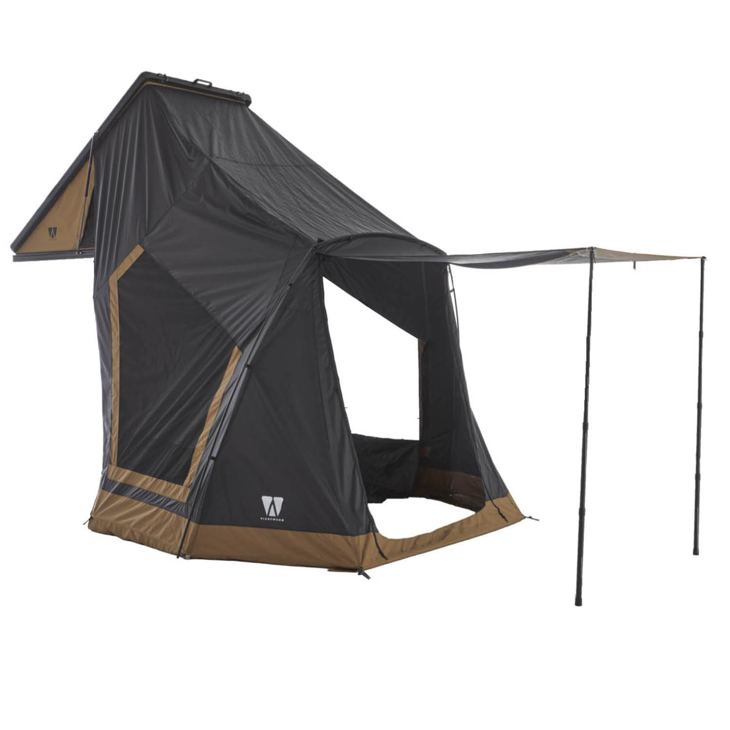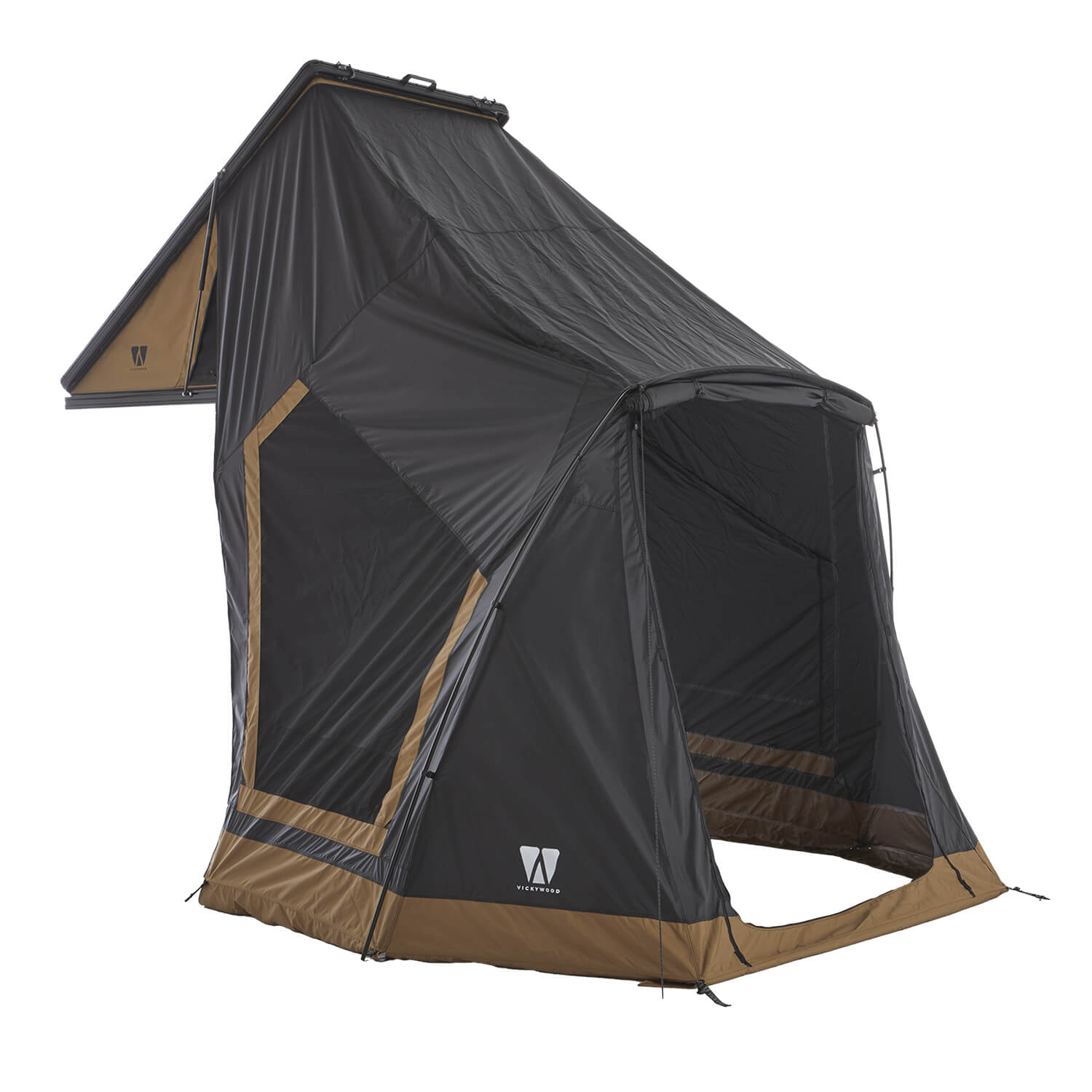 Vickywood CUMARU LIGHT 127 kattoteltan lisähuone, maanruskea tuo kattoteltan yhteyteen suojaisan lisätilan varusteille, pukeutumiseen ja säänsuojaan. Sopii malliin CUMARU LIGHT.