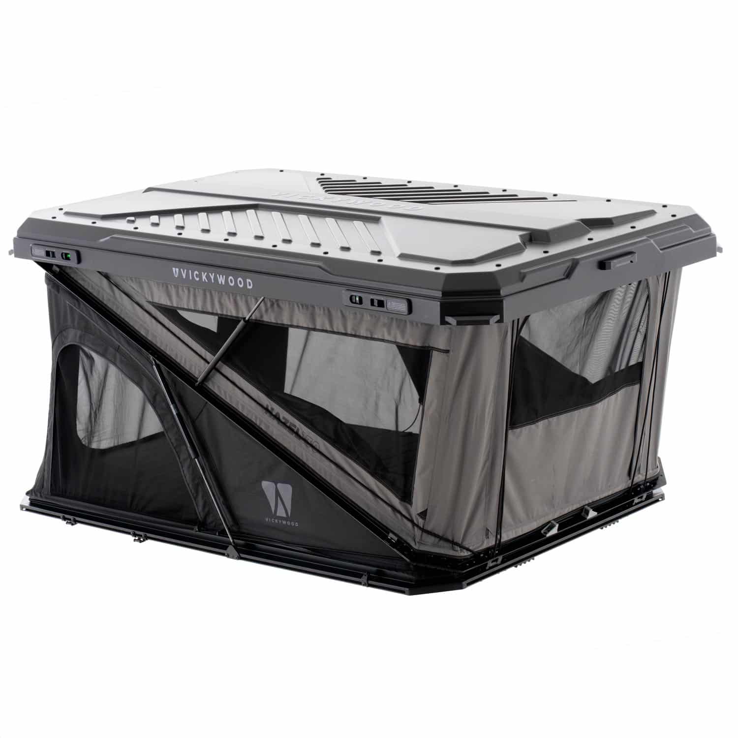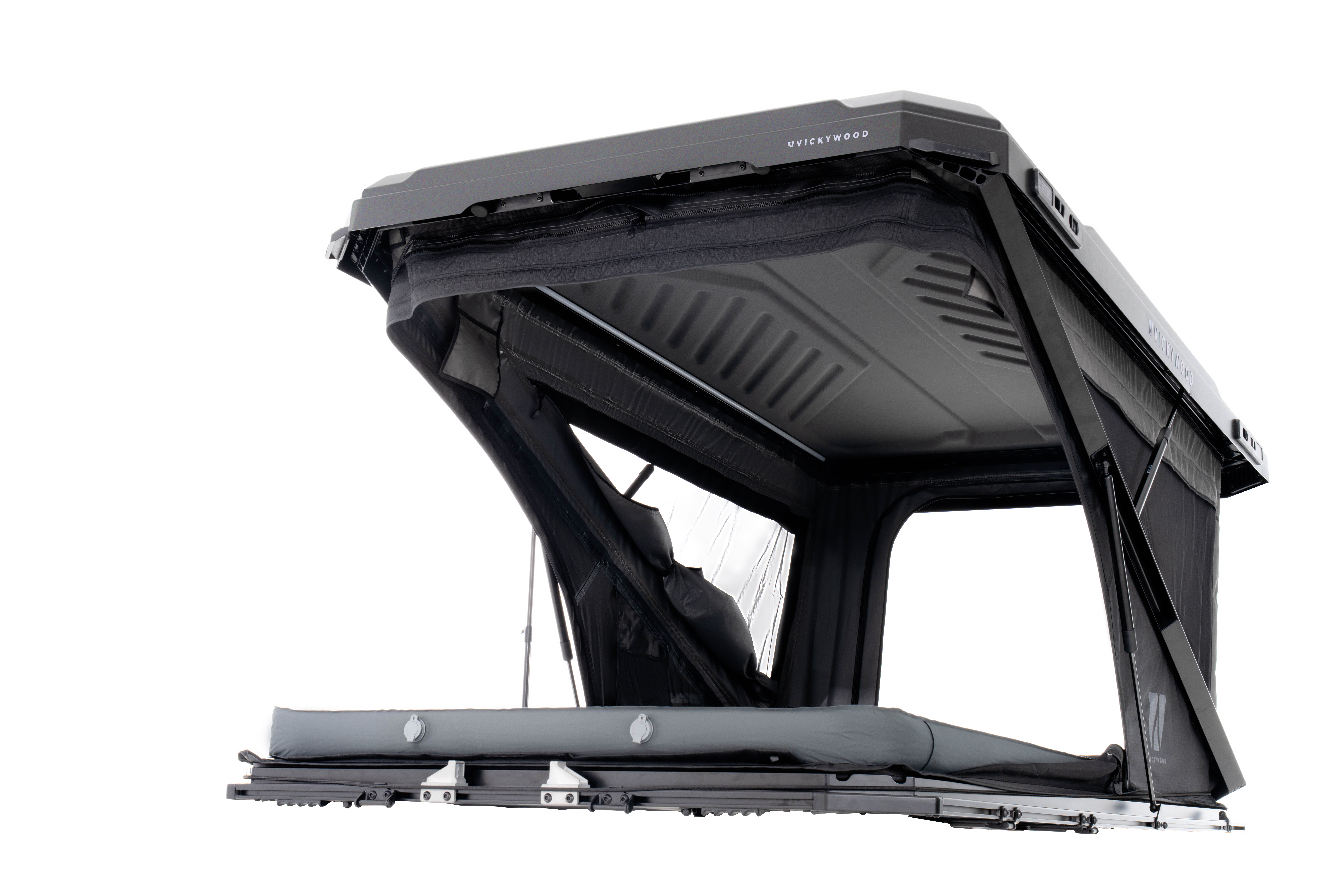 Vickywood HAZEL pop-up kattoteltta on kattoteltta, jossa on pop-up-avaus ja joka sopii 2 henkilölle käyttöön. Saatavana koossa 130 cm ja 155 cm ja väreissä musta/harmaa. Keskeiset ominaisuudet: Pikalukitus ja Panoraamatila