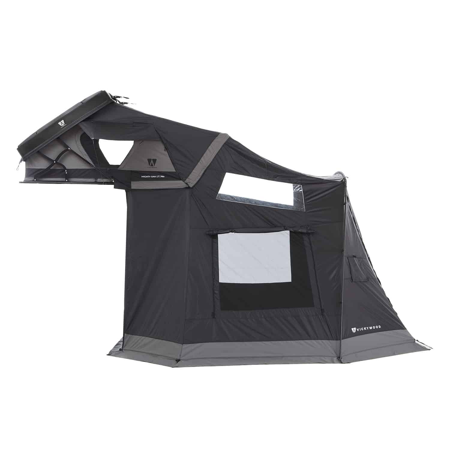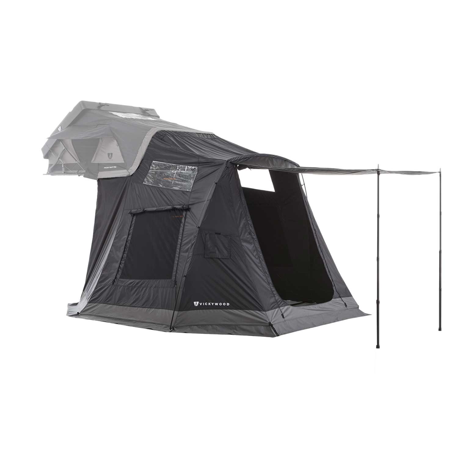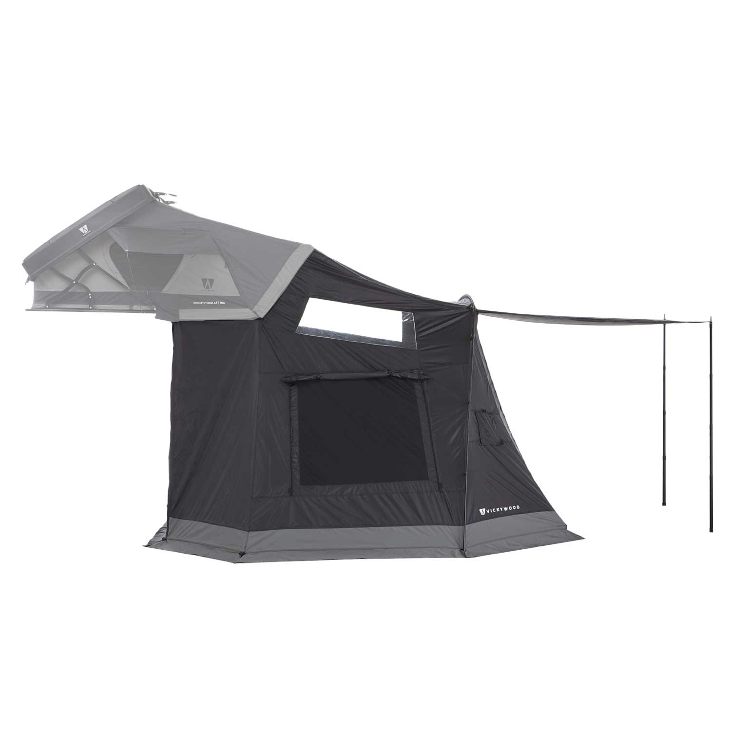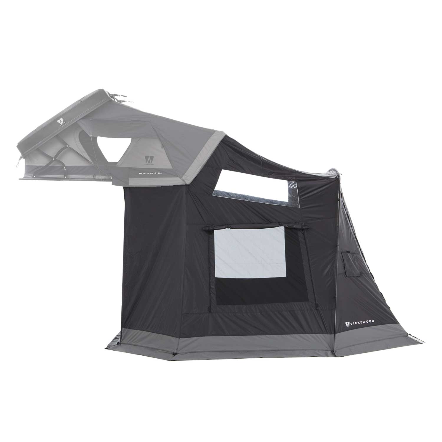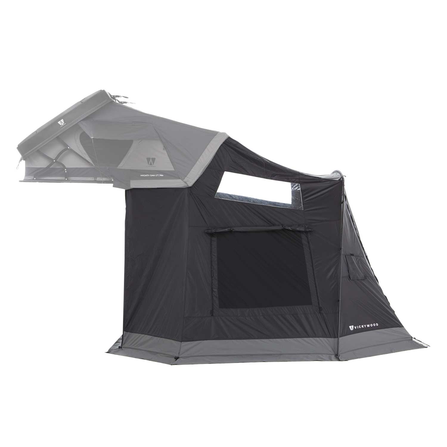 Vickywood MIGHTY OAK LIGHT 165 kattoteltan lisähuone, harmaa tuo kattoteltan yhteyteen suojaisan lisätilan varusteille, pukeutumiseen ja säänsuojaan. Sopii malliin MIGHTY OAK LIGHT 165.