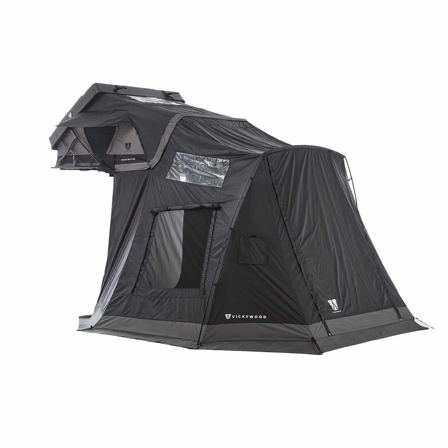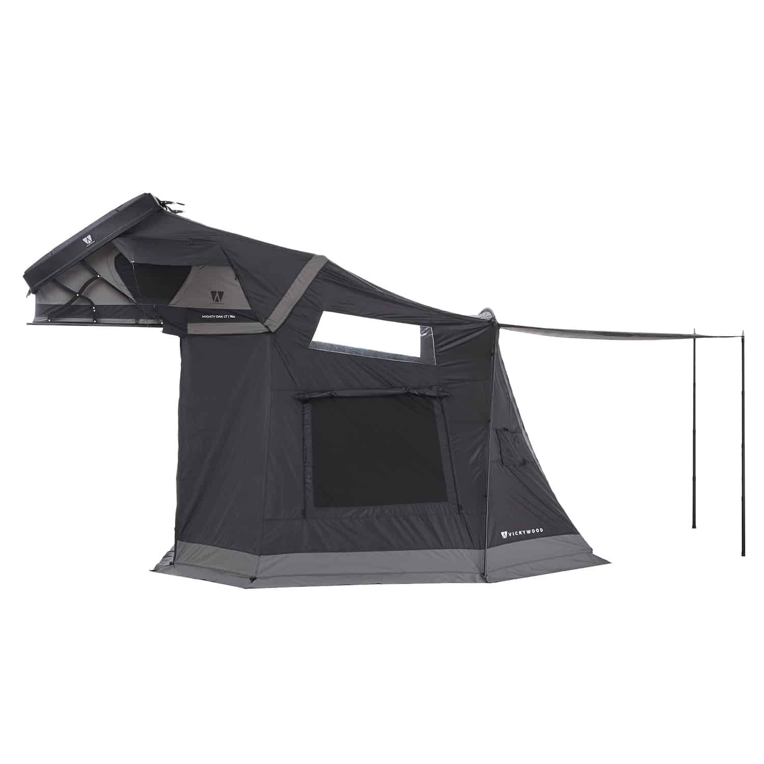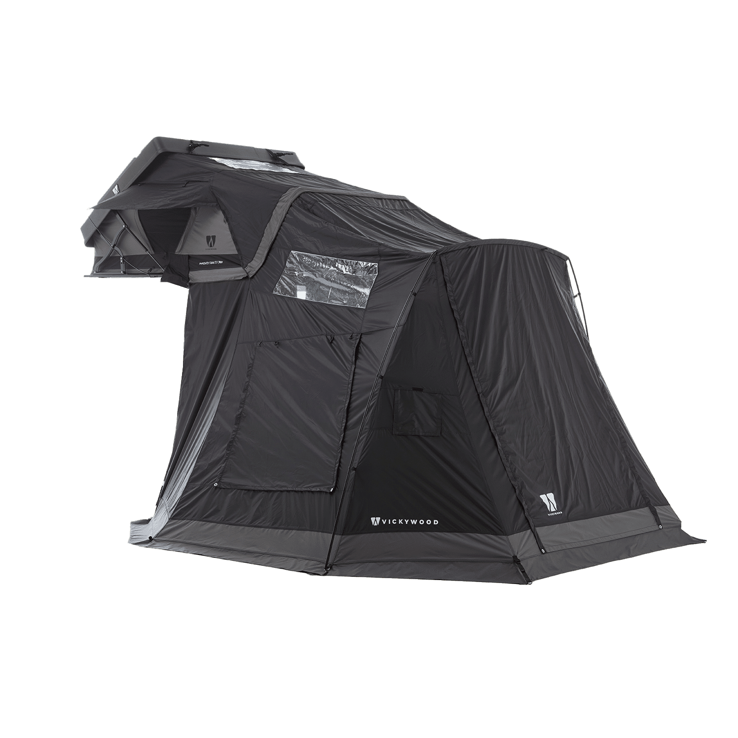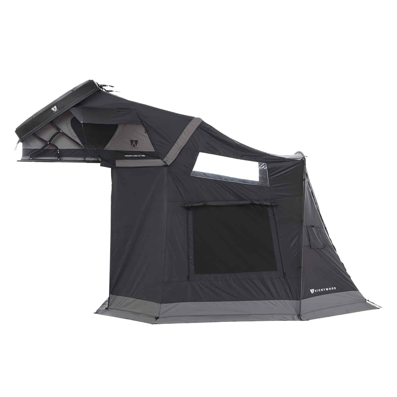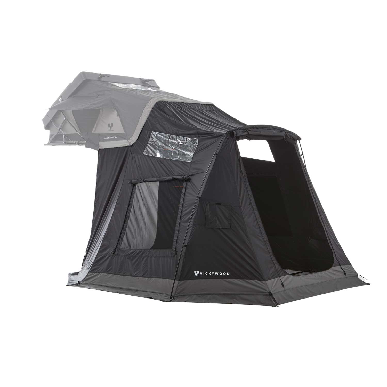 Vickywood MIGHTY OAK LIGHT 165 kattoteltan lisähuone, harmaa tuo kattoteltan yhteyteen suojaisan lisätilan varusteille, pukeutumiseen ja säänsuojaan. Sopii malliin MIGHTY OAK LIGHT 165.