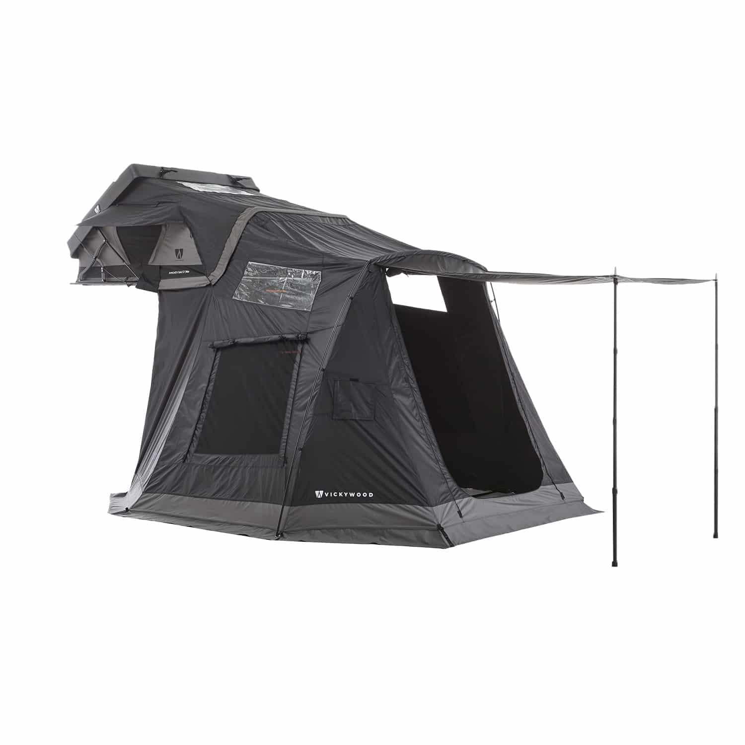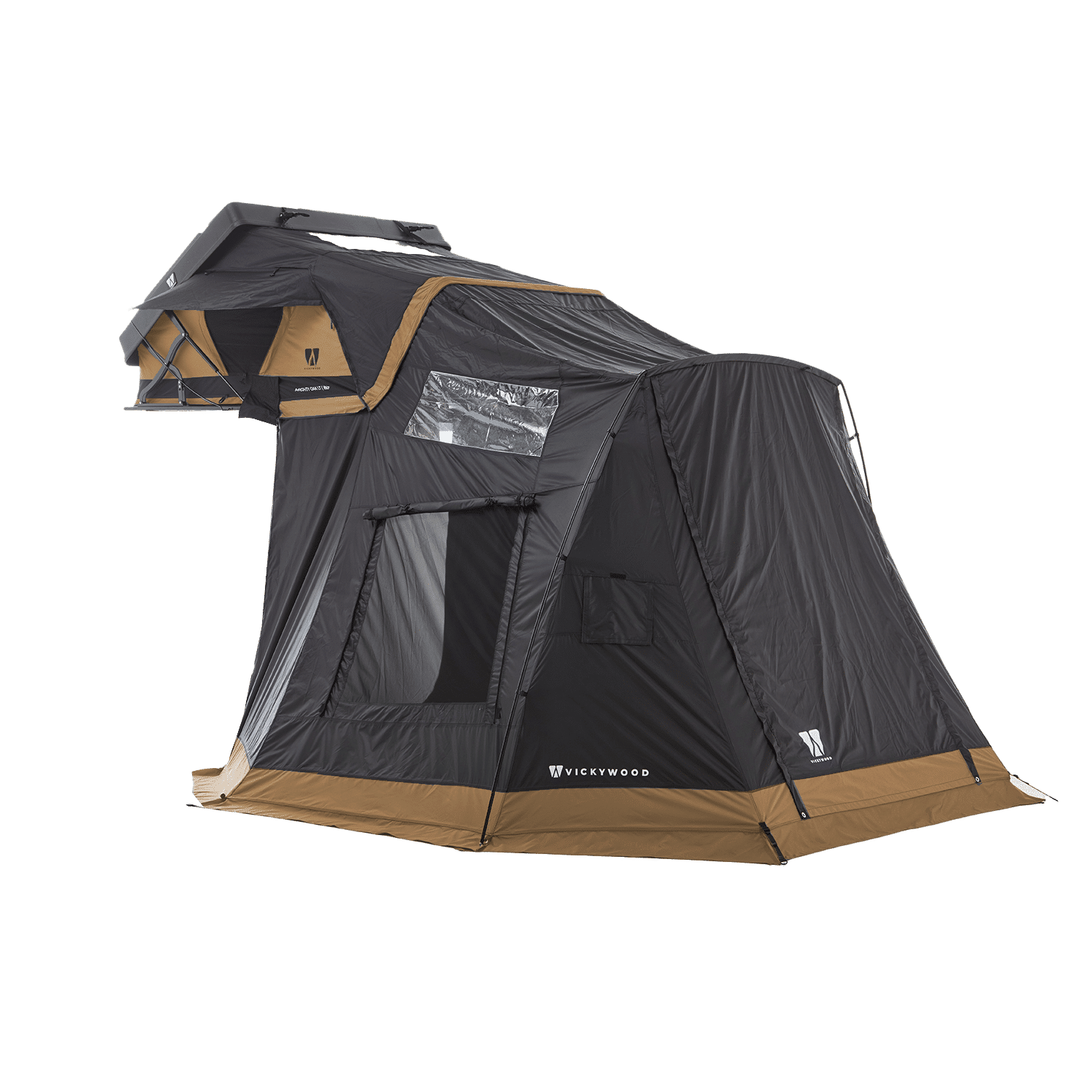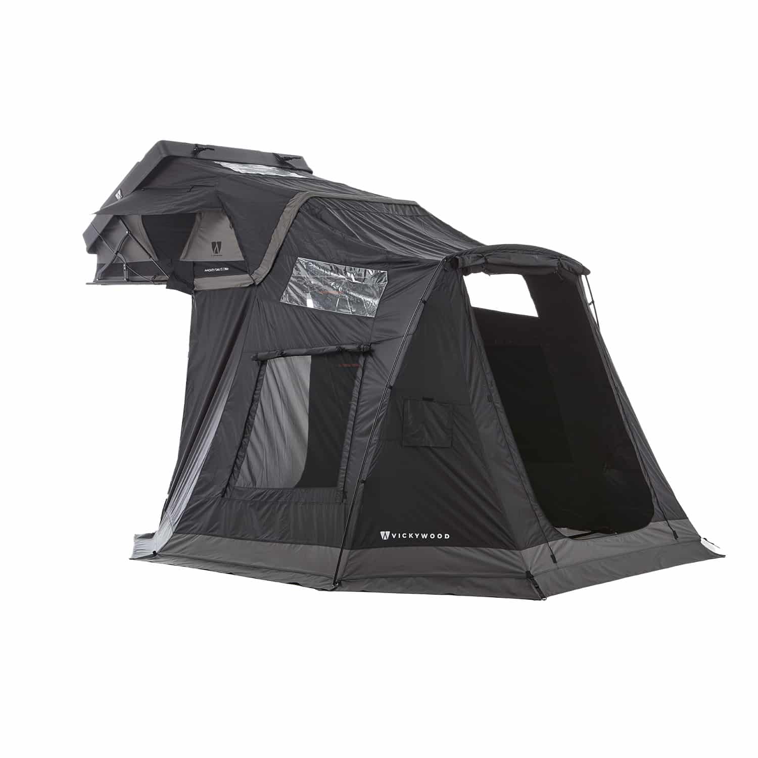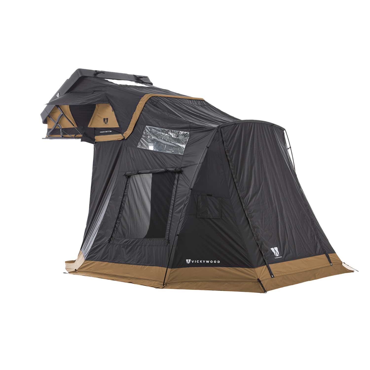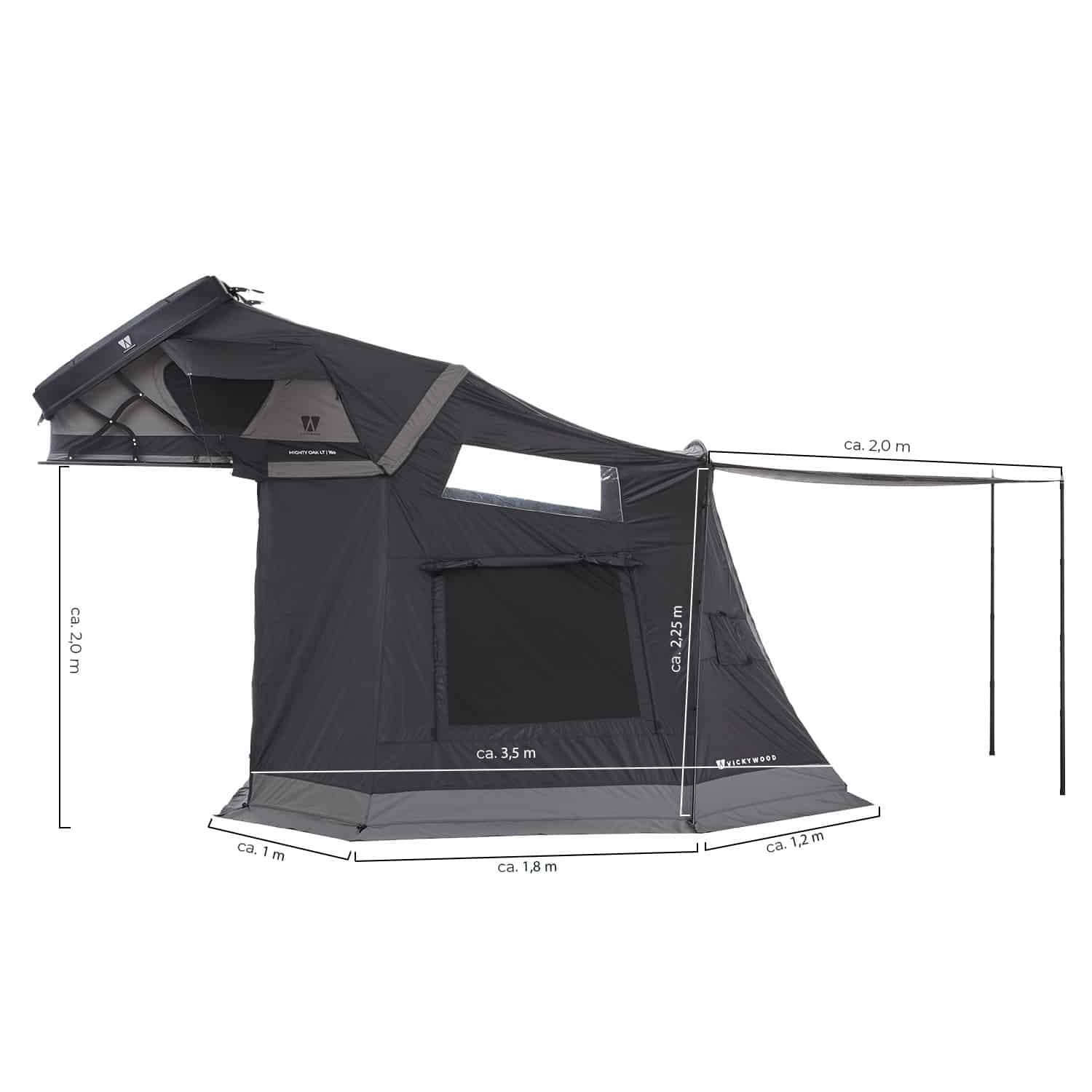 Vickywood MIGHTY OAK LIGHT 165 kattoteltan lisähuone, harmaa tuo kattoteltan yhteyteen suojaisan lisätilan varusteille, pukeutumiseen ja säänsuojaan. Sopii malliin MIGHTY OAK LIGHT 165.
